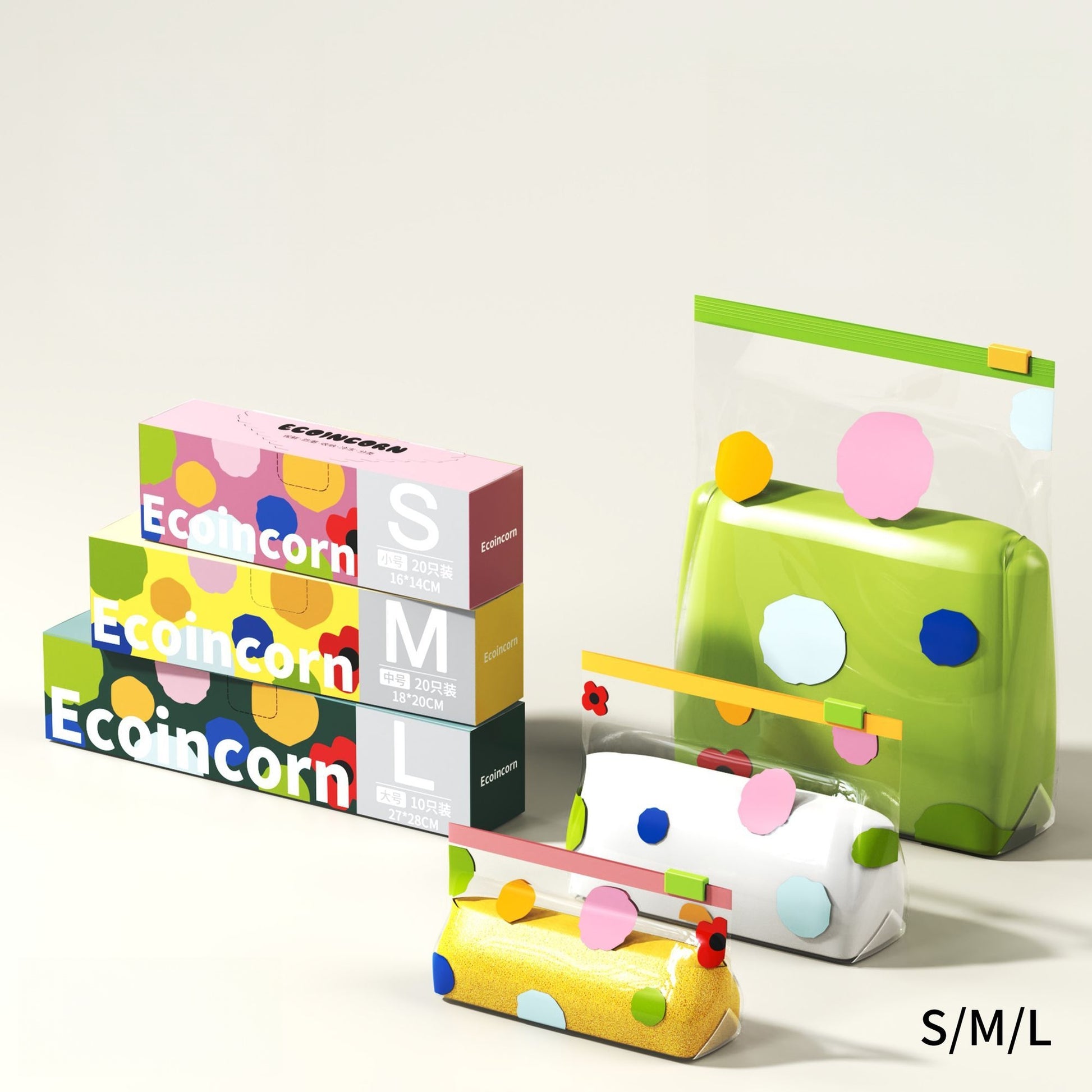 Återförslutningsbara förvaringspåsar med ziplock (Dispenserbox)