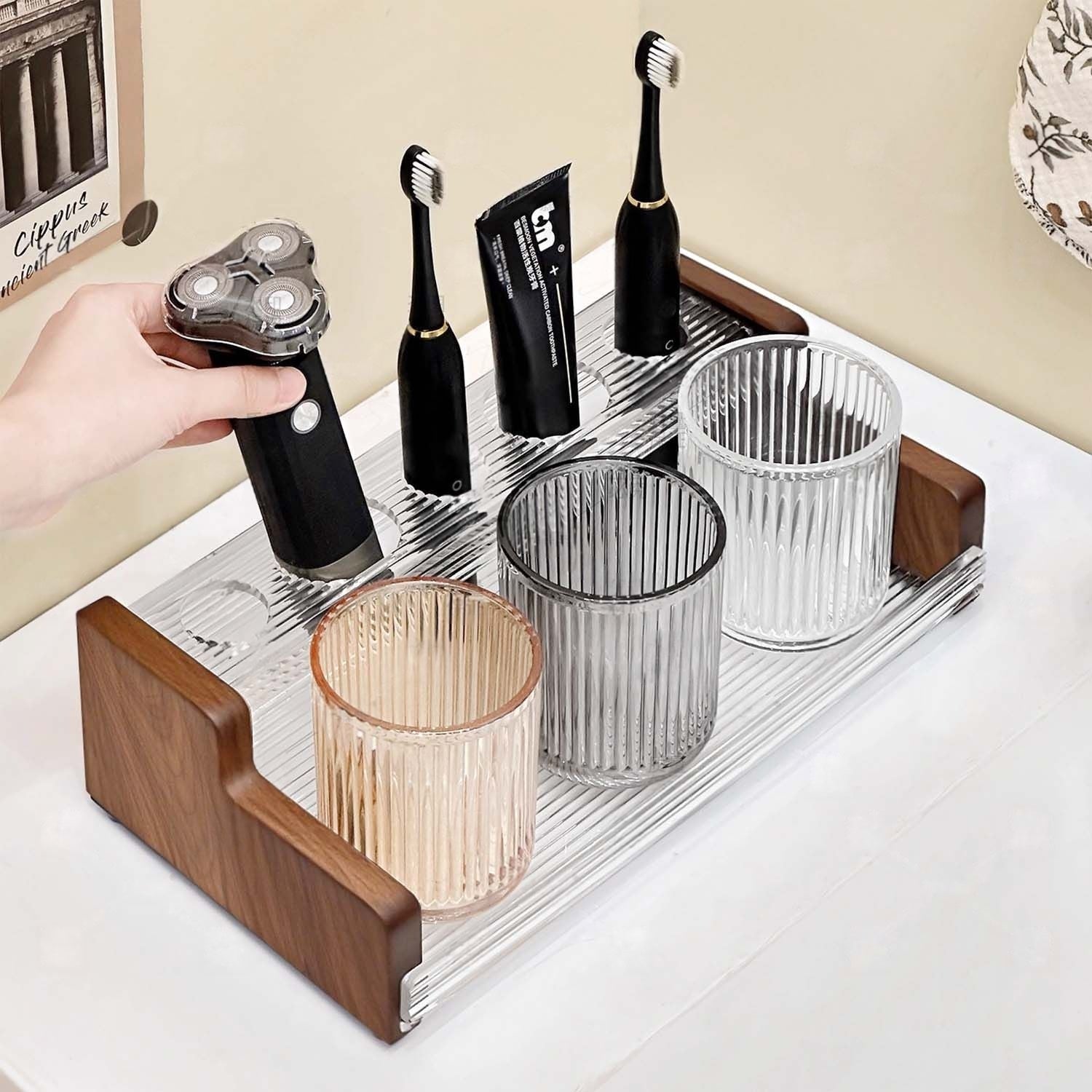 Elegant badrumsbricka i valnöt och räfflad akryl