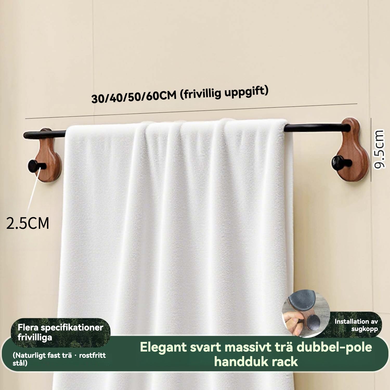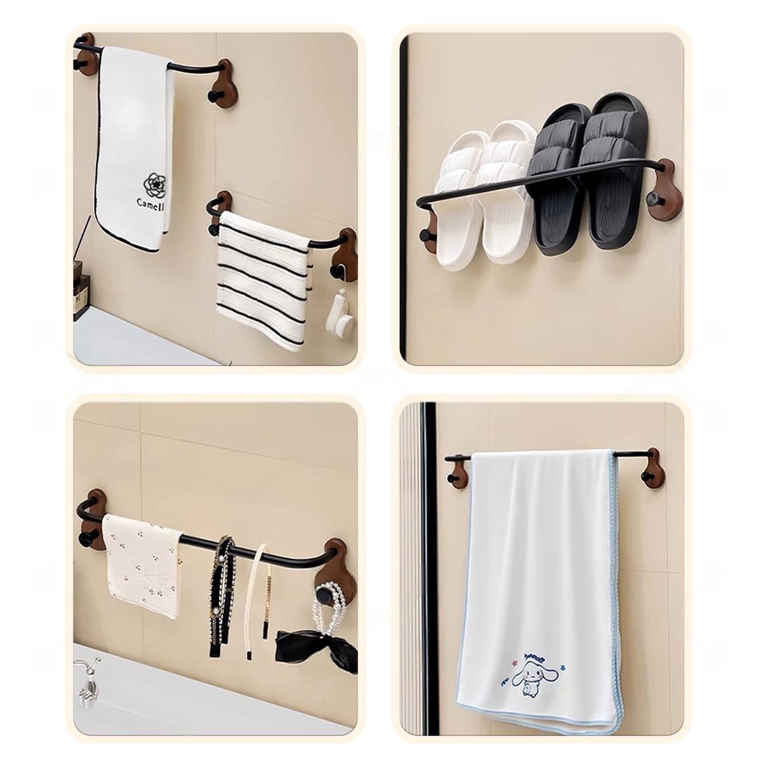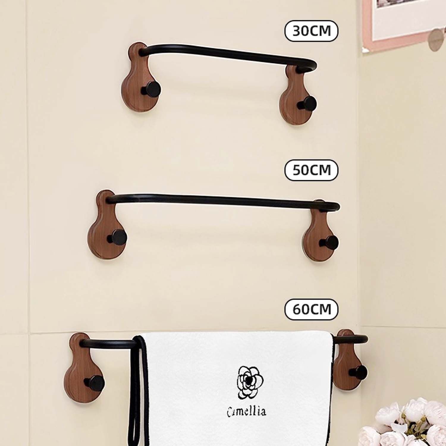 Elegant handdukshängare i valnöt och metall (borrfri)