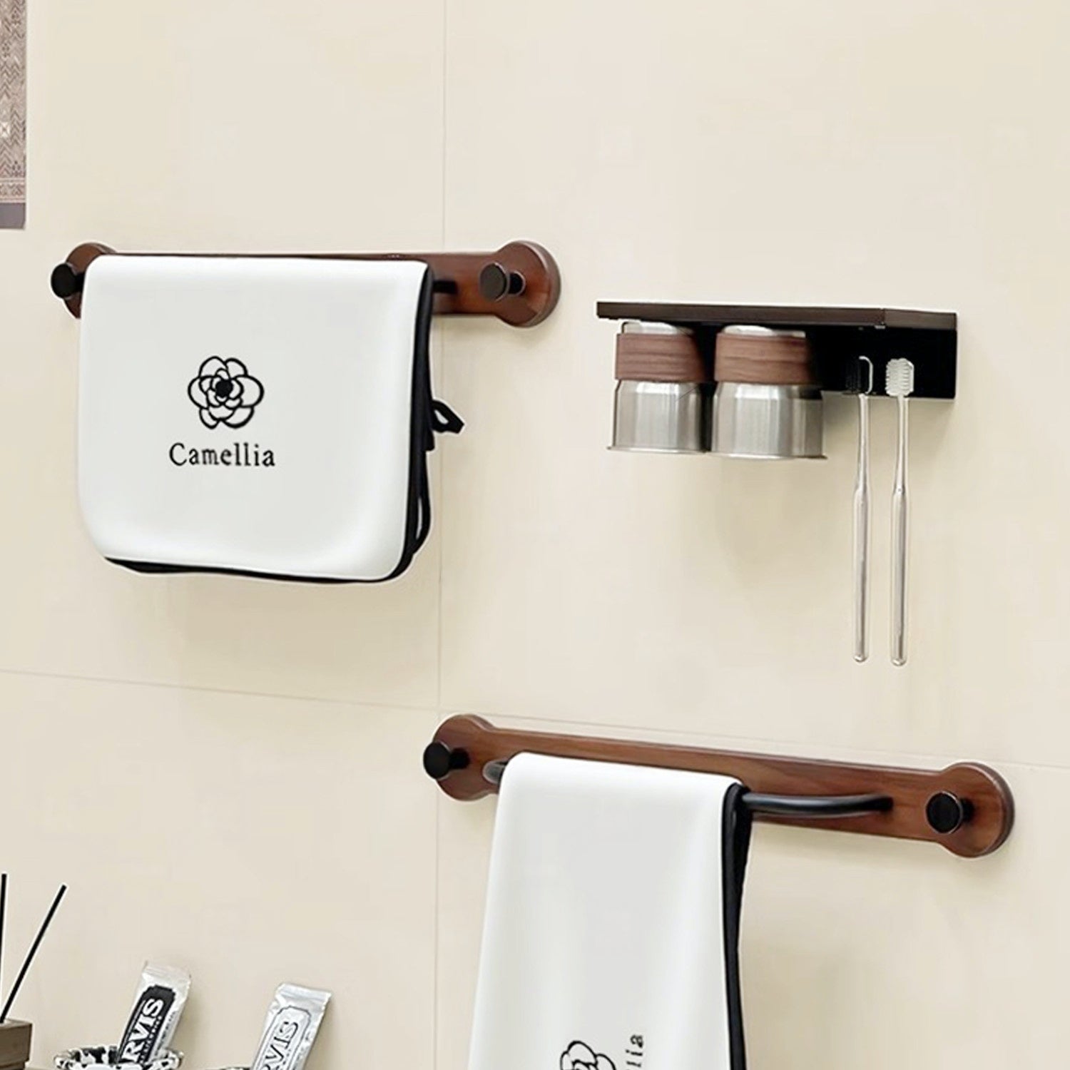 Elegant handdukshängare i valnöt och metall (sugproppsmontering)