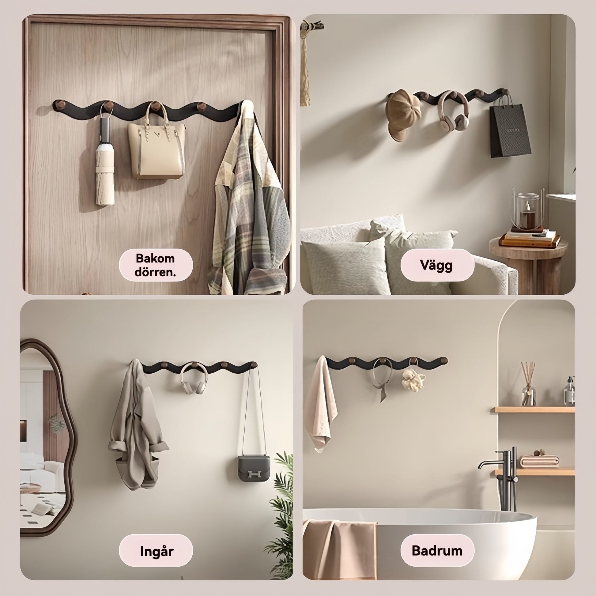 Elegant Vågformad Klädhängare i Äkta Valnöt