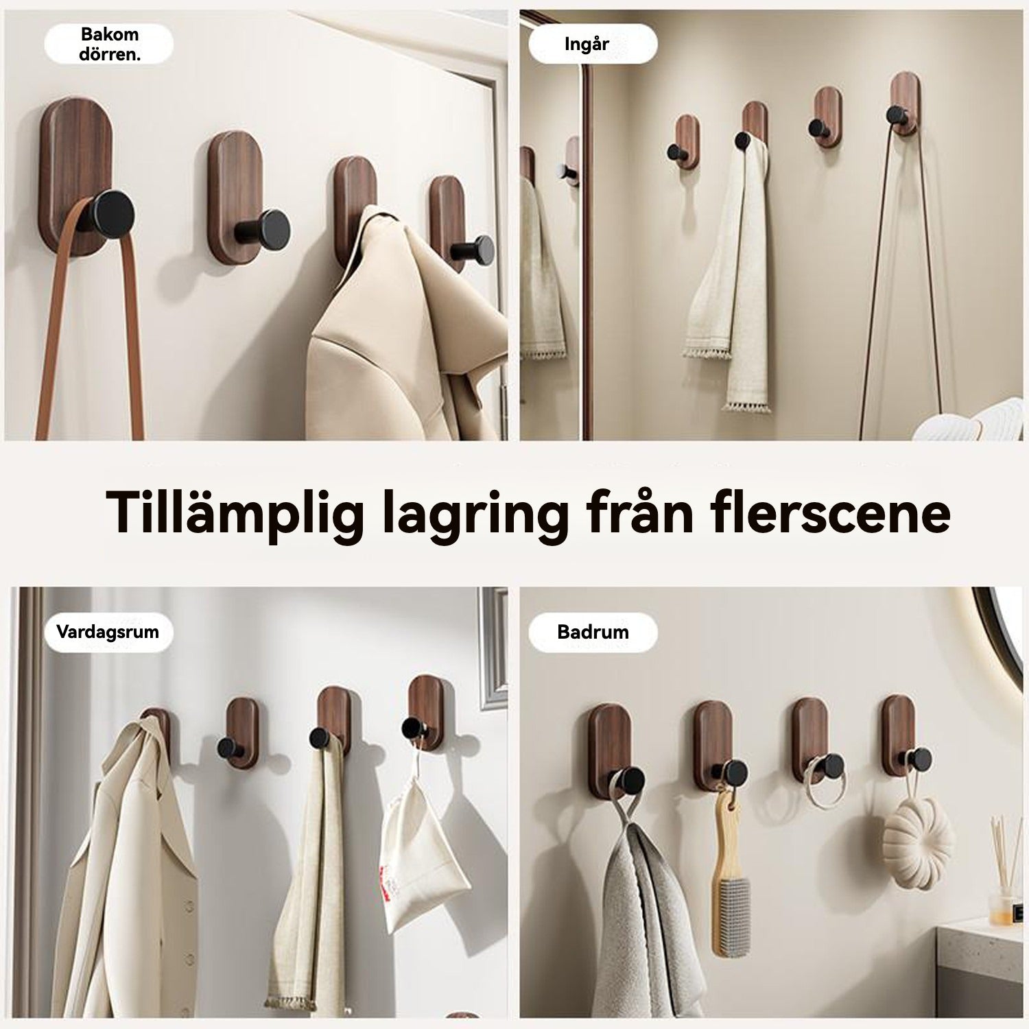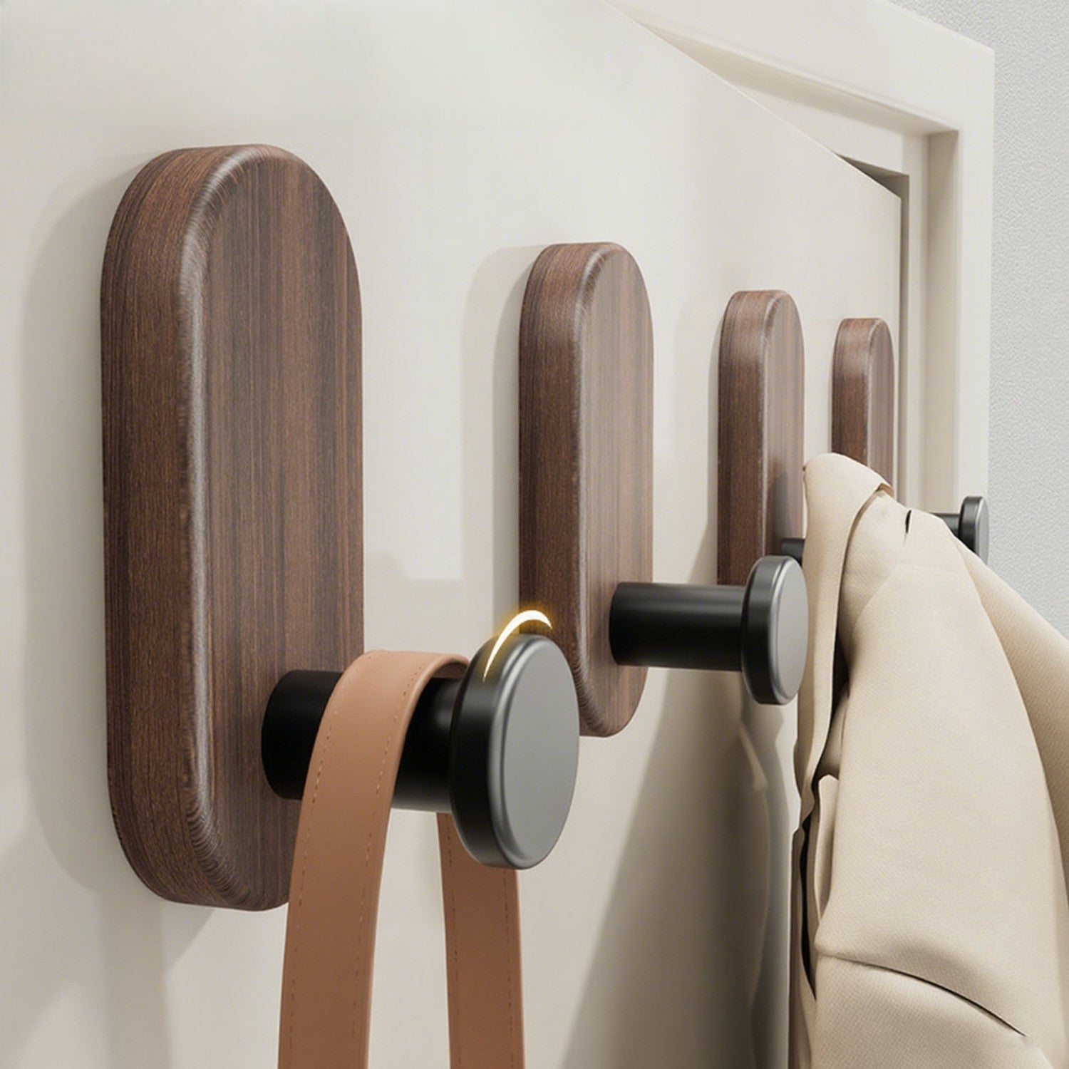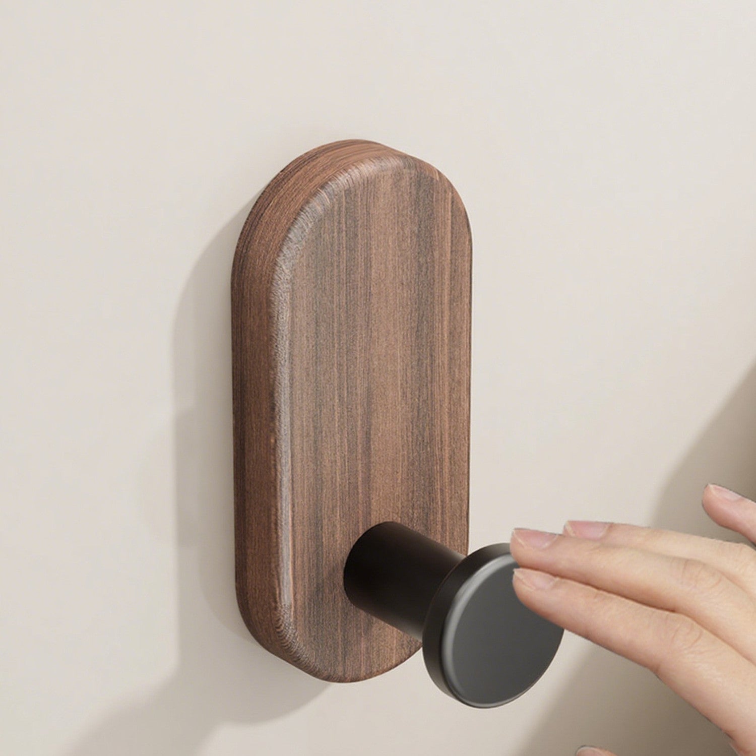 Elegant Vägghängd Krok i Valnötsträ – Självhäftande & Skadefri