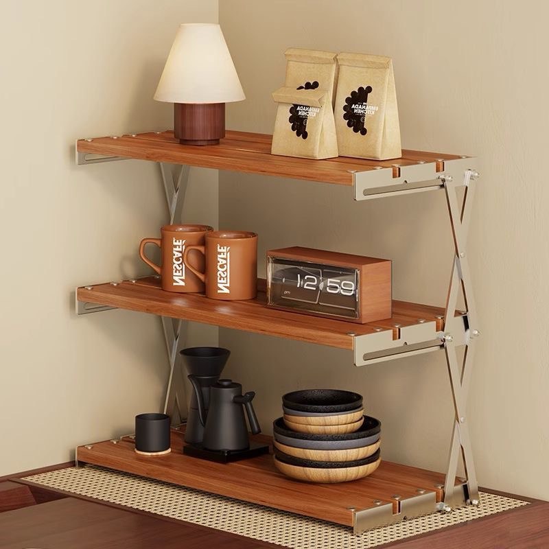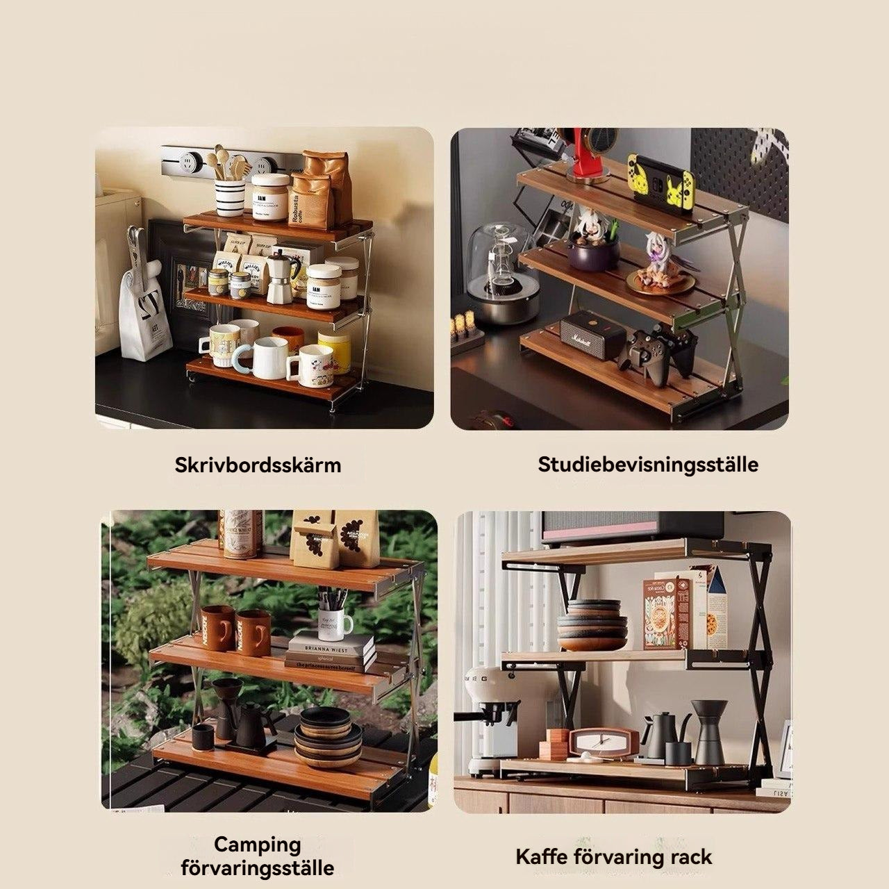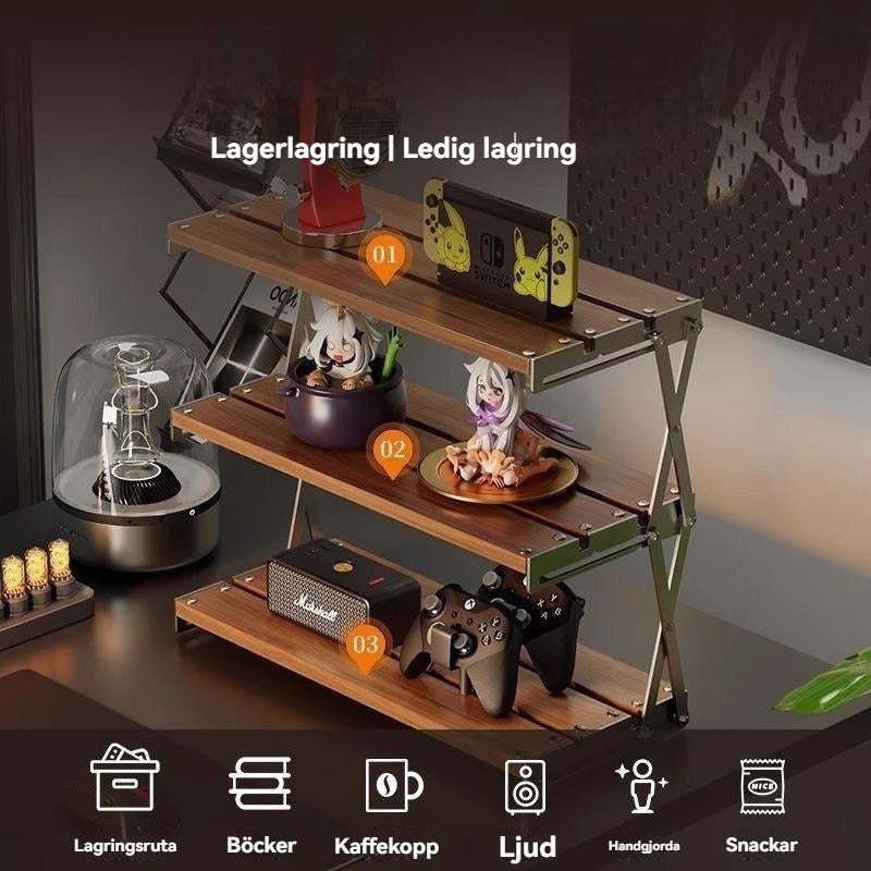 Hopfällbar flerskiktsförvaringshylla i metall – justerbar höjd, 3 lager