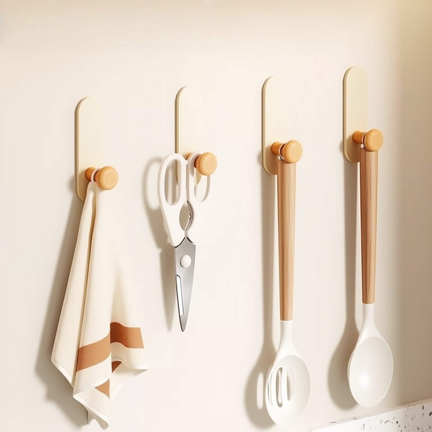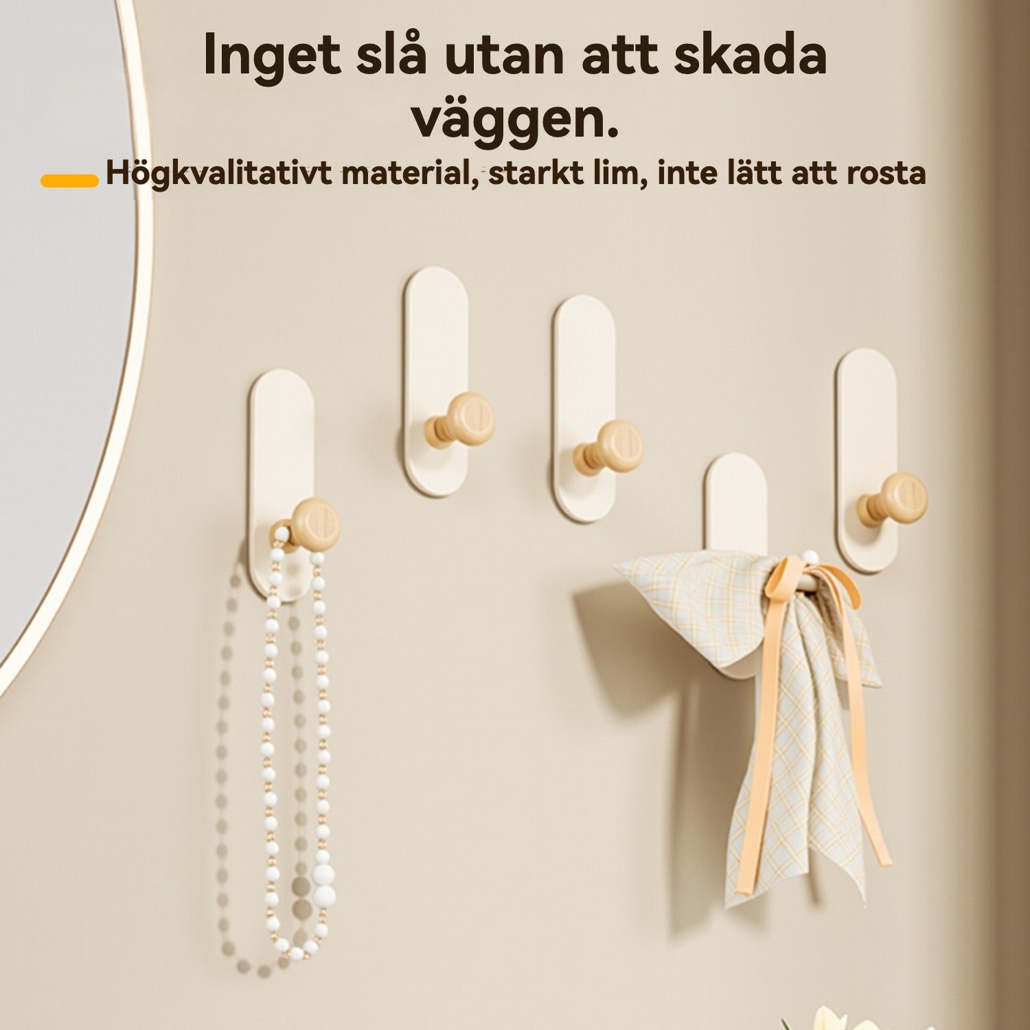 Mångsidig Vägghängd Krok med Träknopp – Fästs Utan Borrhål