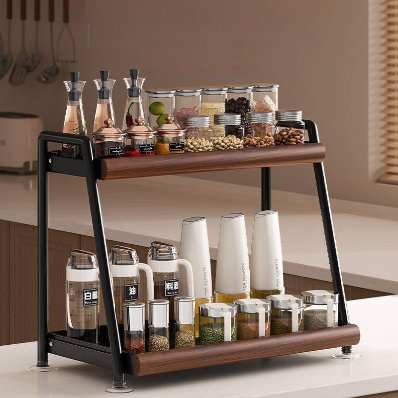 Miljövänlig tvåvånings hylla i massivt trä – stilren förvaring för kök och hem