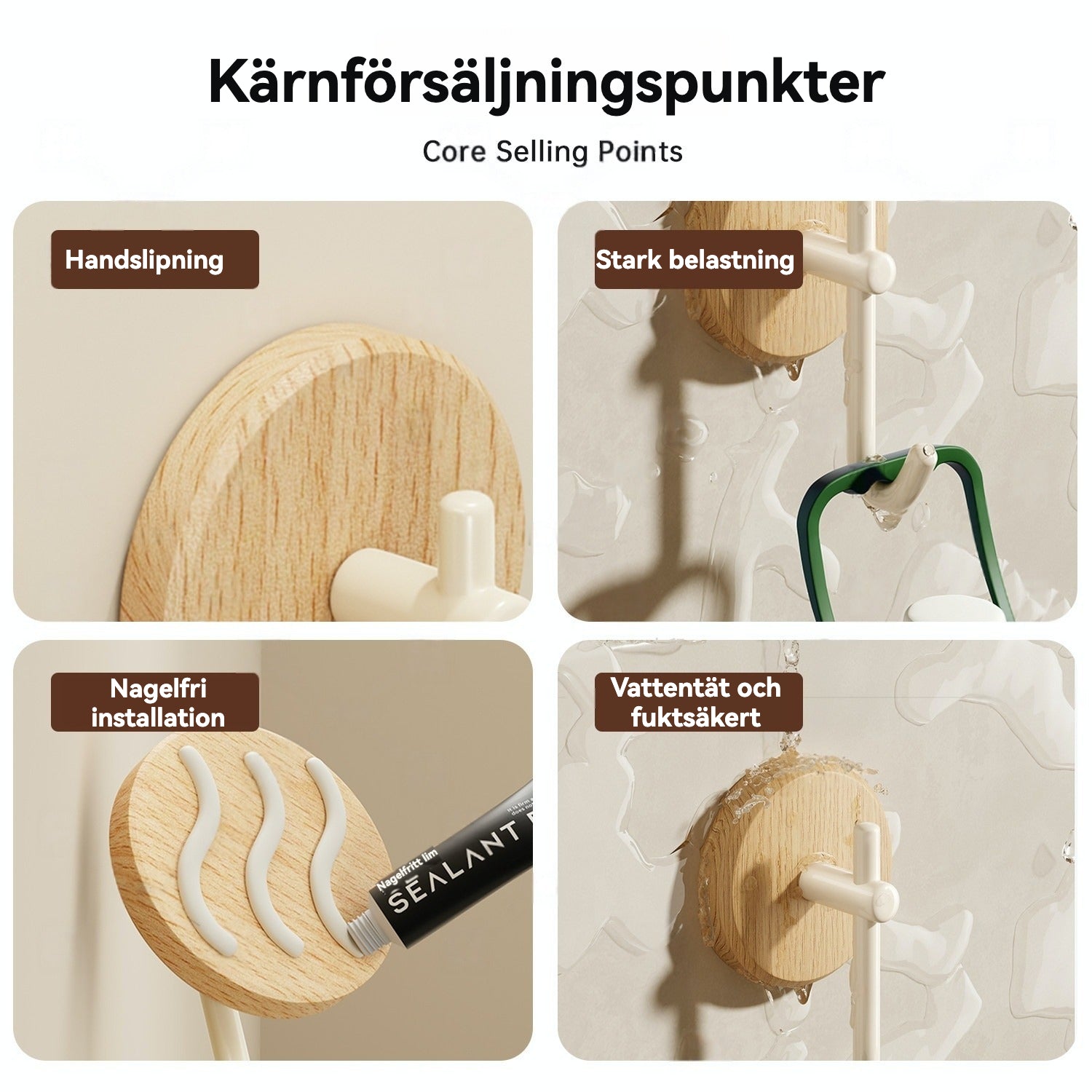 Skandinaviska Väggkrokar i Ljust Trä