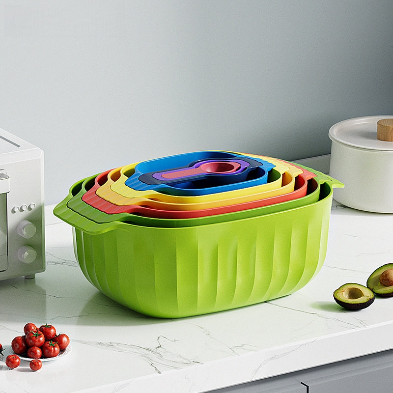 Stapelbart köksset i 9 delar – Skålar, durkslag & måttsatser