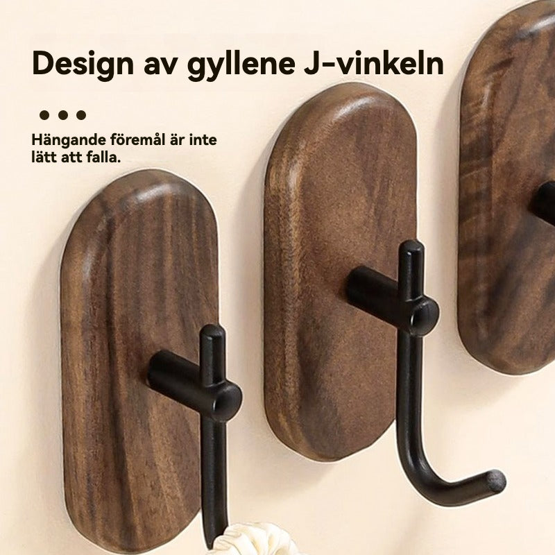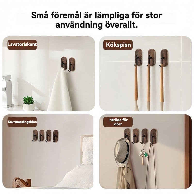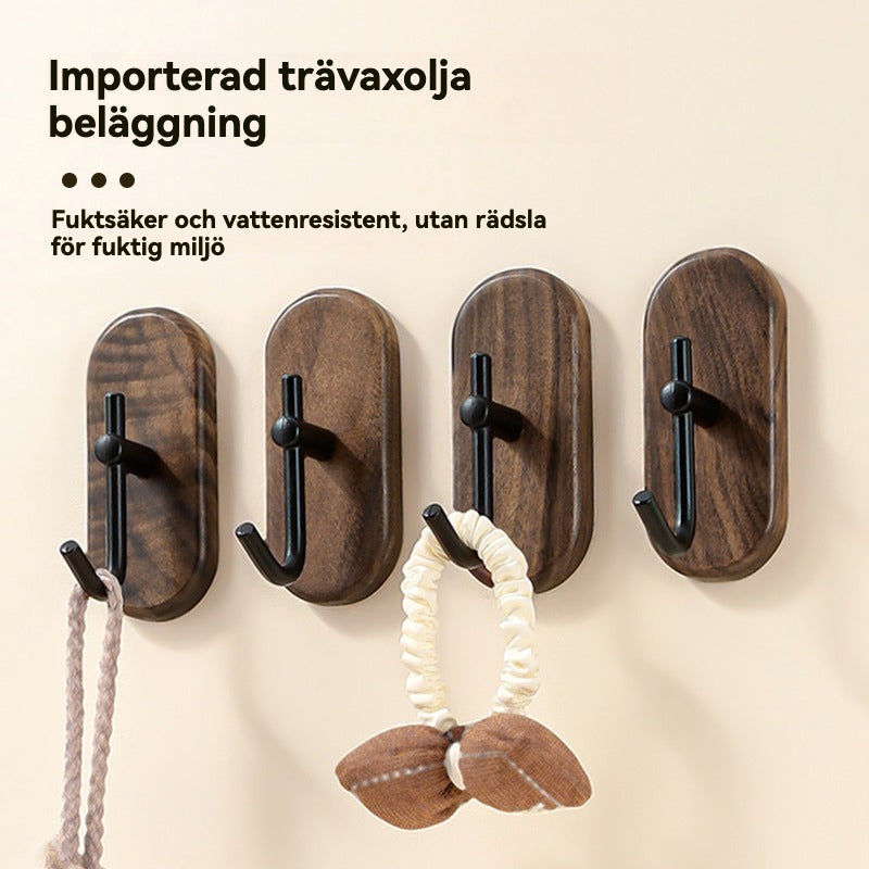 Valnötsfärgade Träkrokar | Stark Bärkapacitet för Badrum, Kök och Hall – Hålfria, Enkel Installation